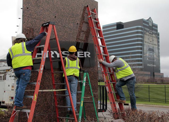 Chrysler sign replacement at Fiat Chrysler Automobiles’ (FCA) headquarters in Auburn Hills, Michigan.