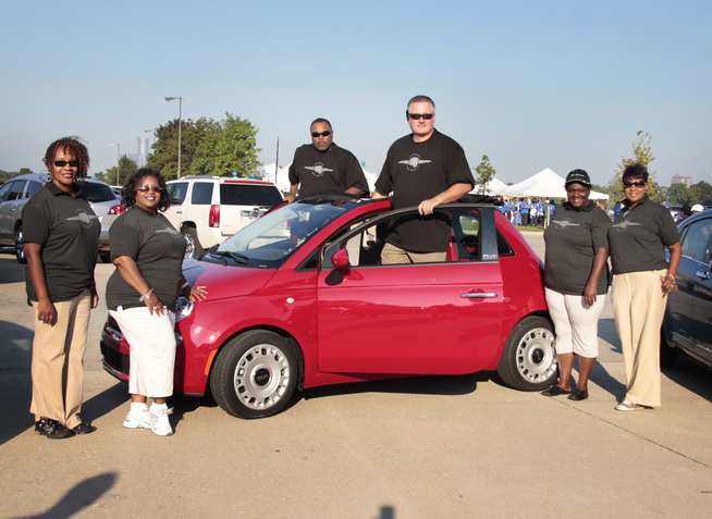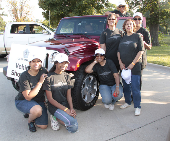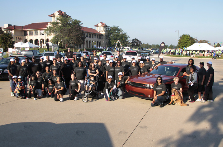 Chrysler employees, family and friends pose for a photo before the 23rd Annual UNCF Walk For Education on Belle Isle in Detroit.