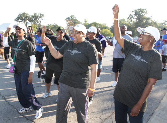Walkers warm up before the 23rd Annual UNCF Walk For Education on Belle Isle in Detroit.