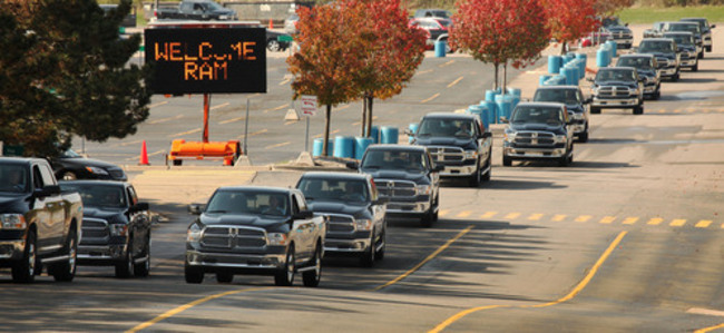 Download Print New 2013 Ram 1500 is on Its Way to Michigan Dealers October 23, 2012 , Auburn Hills, Mich. - The new, highly anticipated 2013 Ram 1500 is here. Nearly 200 dealers gathered at the Palace of Auburn Hills (Mich.) to deliver the new 2013 Ram 1500 to dealerships across Michigan, Ohio, Indiana and Kentucky. “The new Ram 1500 is the truck folks are talking about,” said Fred Diaz, President and CEO Ram Truck Brand and Chrysler Mexico. “Customers are returning to the pickup-truck market. With best-in-class 25-mile-per-gallon fuel efficiency and class-exclusive features, buyers have been anxious to get behind the wheel and check the Ram 1500 out for themselves.” The event is one of several across the United States that the automaker is hosting as part of the truck’s official launch. The vehicles coming out today are 2013 Ram 1500 Big Horn editions, the most popular Ram models across the nation. Depending on the dealer, the vehicles being driven away today will be available for test drives and sale this afternoon. “Ram 1500 production began just a couple of weeks ago, and our dealers are really excited to get them,” added Diaz. “The 2013 Ram 1500 is setting a new standard for the industry.” For 2013, the new Ram 1500 offers buyers best-in-class fuel efficiency, new technology and new features without sacrificing capability. Ram 1500 – the most recognizable pickup on the road – raises the bar with a truckload of pioneering, fuel-saving systems and first-in-segment technologies: eight-speed TorqueFlite 8 transmission, stop-start and active aerodynamics, including grille shutters and air suspension. Ram engineers changed every area of the truck – from a newly designed frame to new engines and transmissions to a new interior with the next-generation Uconnect® system. With best-in-class ride and handling and best-in-class aerodynamics, the 2013 Ram 1500 delivers unmatched content, performance and capability to truck buyers. The 2013 Ram 1500 is available in nine trim levels and starts at $23,585 including $995 destination charge. About Ram Truck Brand The Ram Truck brand continues to establish its own identity and clearly define its customer since its launch as a standalone vehicle brand. Creating a distinct brand for Ram trucks has allowed the brand to concentrate on how core customers use their trucks and what new features they'd like to see. Whether focusing on a family that uses its half-ton truck day in and day out, a hard-working Ram Heavy Duty owner or a business that depends on its commercial vehicles every day, Ram has the truck market covered. The Ram Truck brand has the most innovative lineup of full-size trucks on the market. Ram Truck has emerged as a full-size truck leader by investing substantially in new products, infusing them with great looks, refined interiors, durable engines and features that further enhance their capabilities. Truck customers, from half-ton to commercial, have a demanding range of needs and require their vehicles to provide high levels of capability. Ram trucks are designed to deliver a total package.